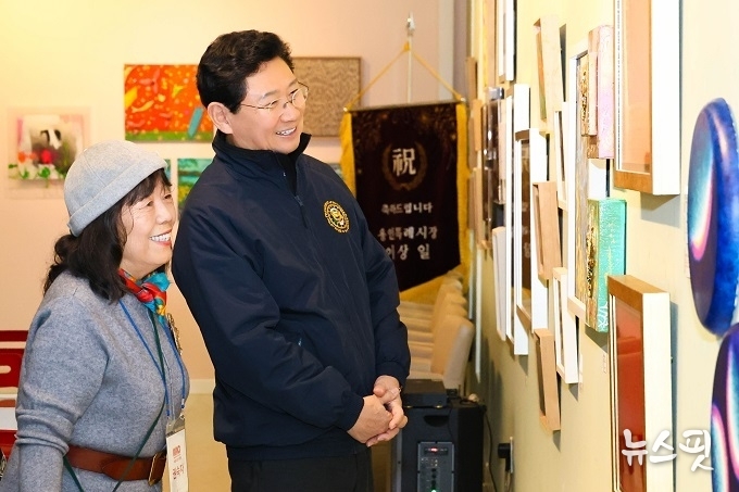이 시장은 이어 처인구 이동읍에 있는 ‘권숙자안젤리미술관’에서 열린 ‘1004 아름다운 동행’ 자선전 행사에 참석해 축하했다.