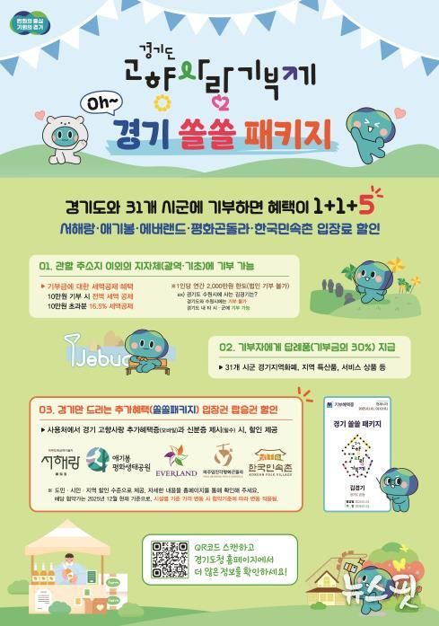 도는 기부 참여를 독려하고 관광 소비를 지역으로 이끌기 위해 세액공제와 답례품에 더해 경기도만의 추가 혜택을 담은 ‘고향사랑 쏠쏠패키지’를 기획했다.