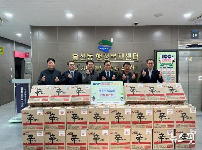 (뉴스핏 = 김호 기자) 의정부시 흥선동행정복지센터는 12월 18일 의정부시민교회가 ‘100일간 사랑릴레이 배턴 잇기’에 동참해 라면 100상자를 기탁했다고 밝혔다.