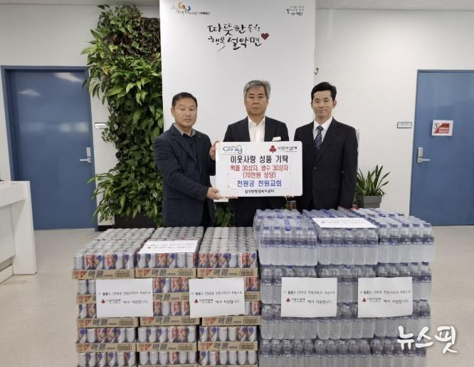 이번 성품은 경기사회복지공동모금회를 통해 관내 소외된 이웃에게 사용될 예정이다. 천원교회는 수년 전부터 저소득층을 위해 후원물품 나눔과 지역 어르신 식사 제공, 다문화가정 행사 등 이웃사랑에 앞장서고 있다.