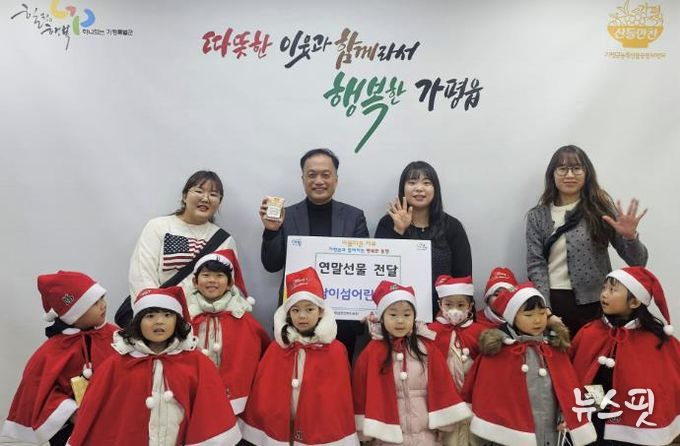 (뉴스핏 = 김호 기자) 가평군 가평읍 소재 남이섬어린이집 선생님과 아이들은 지난 19일 가평읍 행정복지센터를 방문해 따뜻한 연말 선물을 전달했다.