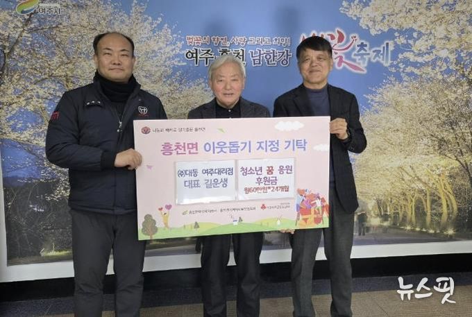 (뉴스핏 = 김호 기자) (주)대동 여주대리점은 저소득 취약계층 청소년의 건강한 성장과 꿈을 응원하기 위해 매월 60만 원씩 24개월간 총 1440만 원의 후원금을 흥천면 행정복지센터에 지정기탁 형태로 납부하기로 약속했다.