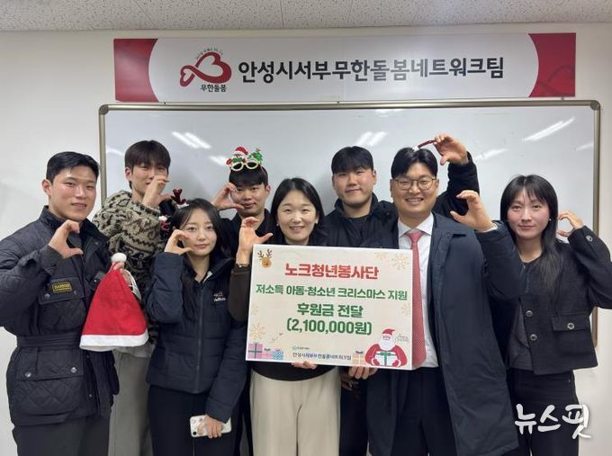 (뉴스핏 = 김수진 기자) 안성시 노크청년봉사단은 지난 22일 사회복지법인 한길복지재단에서 수탁 운영하는 안성시서부무한돌봄네트워크팀에 저소득 아동·청소년 크리스마스 지원을 위한 후원금 2,100,000원을 전달했다고 밝혔다.