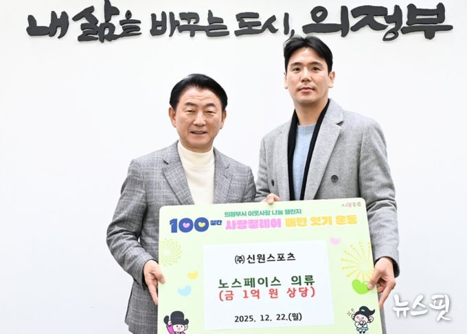 (뉴스핏 = 김호 기자) 의정부시는 12월 22일 ㈜신원스포츠 노스페이스 양주점(LF스퀘어몰)과 포천송우점이 관내 아동복지시설에 아동용 의류 및 가방 등 1억 원 상당의 물품을 기부했다고 밝혔다.