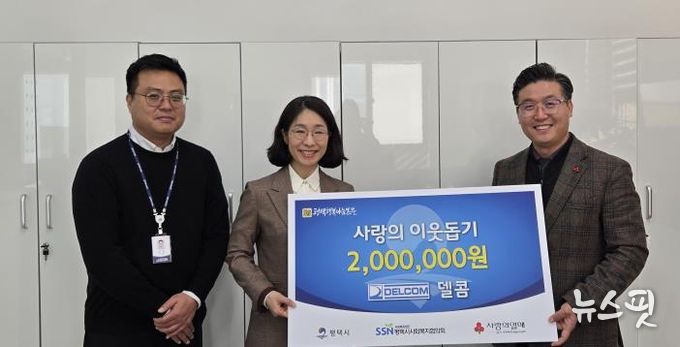 (뉴스핏 = 김수진 기자) 델콤이 지난 19일 평택행복나눔본부를 방문해 평택시 아동복지시설을 위해 200만 원의 성금을 전달했다.