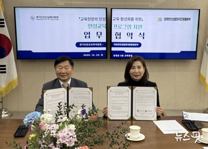 (뉴스핏 = 김수진 기자) 경기도안산교육지원청은 12월 23일 오후 3시 30분, 따뜻한인성함양국민운동본부와 학교 현장의 인성교육 강화와 도덕성 회복을 위한 지역 연계형 인성교육 지원 체계 구축을 위한 업무협약(MOU)을 체결했다.