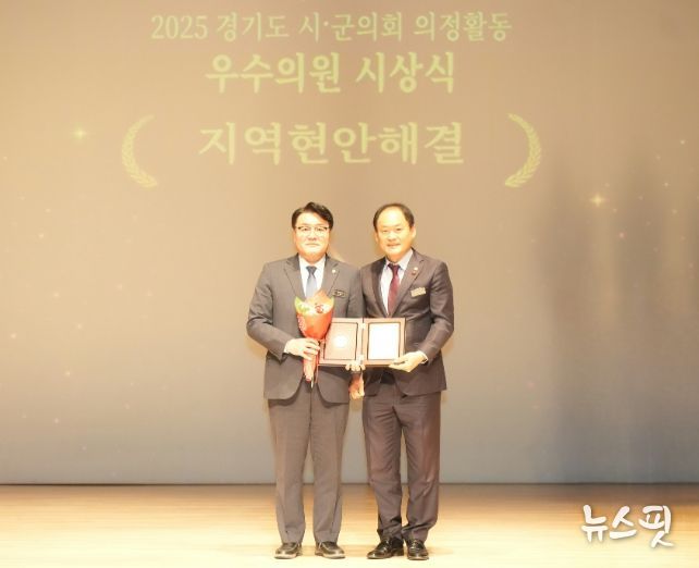 (뉴스핏 = 김수진 기자) 포천시의회 연제창 부의장이 24일 동두천시 시민회관에서 열린 2025년 경기도시·군의회 의정활동 우수의원 시상식에서 지역현안해결 분야 우수의원으로 선정되는 영예를 안았다.