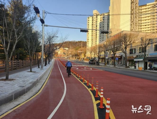 (뉴스핏 = 김호 기자) 수원특례시가 광교산로 교통 혼잡을 줄이기 위한 도로 확장 공사와 자전거도로 조성 공사를 마무리했다.