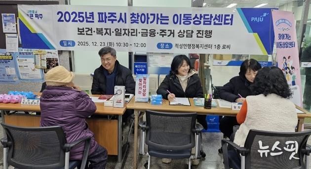 (뉴스핏 = 김호 기자) 파주시는 지난 23일 적성면 행정복지센터에서 정보 취약계층을 대상으로 보건, 복지, 일자리, 금융, 주거 등 5개 분야를 한자리에서 상담하는 ‘찾아가는 이동상담센터’를 운영했다고 밝혔다.