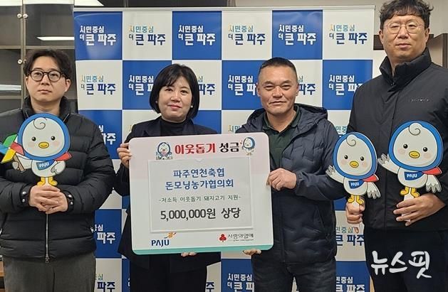 (뉴스핏 = 김호 기자) 파주시는 23일 파주연천축협 돈모닝농가협의회로부터 관내 저소득 취약계층을 위한 돼지고기 200kg(500만 원 상당)를 기탁 받았다고 밝혔다.