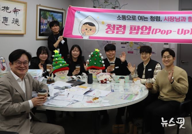 시장실에서 열린 ‘청렴 팝업 카페’에는 김병수 시장과 철도과 직원 5명이 참석해 업무뿐 아니라 공직자로서의 책임과 보람, 시정업무의 AI 활용, 개인적인 꿈에 이르기까지 폭넓게 이야기를 나누며 서로를 이해하는 시간을 가졌다.
