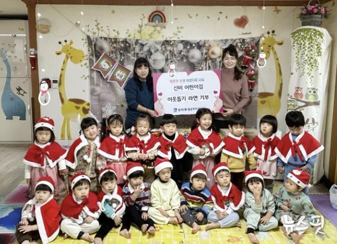 (뉴스핏 = 김호 기자) 수원시 장안구 정자3동은 지난 24일 신비어린이집 원아들이 크리스마스를 앞두고 정자3동 행정복지센터를 찾아 라면 26박스를 전달했다고 밝혔다.