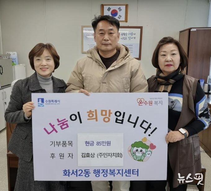 김효상 대표는 화서2동 주민자치회 문화복지분과장으로 활동하며, 평소 지역 주민의 복지 증진과 공동체 활성화를 위한 다양한 사업과 활동에 적극 참여해 왔다. 연말을 맞아 이웃을 위한 나눔을 직접 실천하고자 이번 성금 기부를 결정했으며, 특히 주민자치회 구성원으로서 지역사회에 대한 책임과 연대의 가치를 몸소 실천했다는 점에서 의미가 크다.
