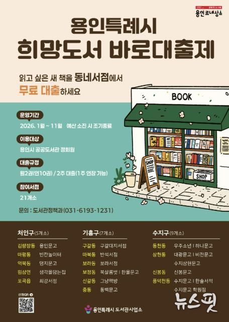 (뉴스핏 = 김수진 기자) 용인특례시는 시민들의 높은 호응을 얻었던 희망도서 바로대출제를 내년 1월 2일부터 시행한다고 30일 밝혔다.