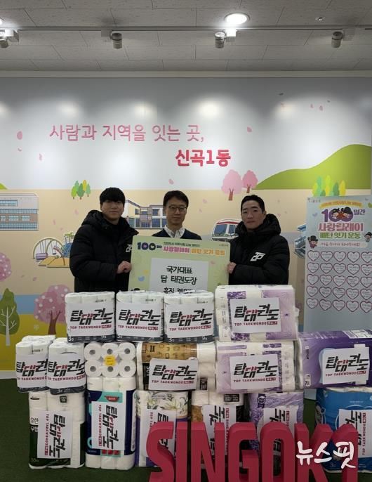 (뉴스핏 = 김호 기자) 의정부시 신곡1동주민센터는 지난 26일 신곡동 국가대표 탑태권도이 휴지 369개를 기부했다고 밝혔다.
