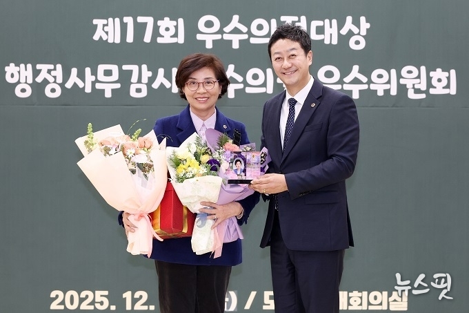 (뉴스핏 = 김수진 기자) 경기도의회 미래과학협력위원회 김미숙 의원(더불어민주당, 군포3)이 성실하고 책임 있는 의정활동을 인정받아 2025 행정사무감사 우수의원상과 의회교육연수 우수의원상을 동시에 수상했다.
