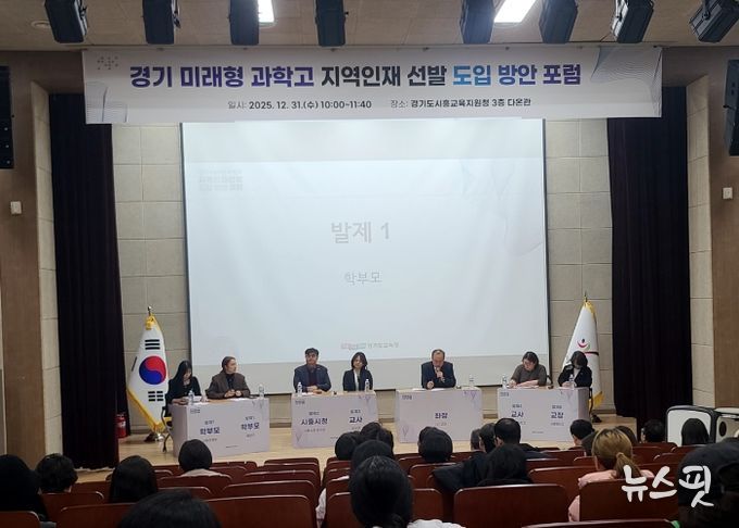 (뉴스핏 = 김수진 기자) 경기도시흥교육지원청은 2025년 12월 31일 오전 10시에 ‘경기 미래형 과학고 지역인재선발 도입 방안 포럼’의 마지막 의견 수렴회를 개최했다. 이번 포럼은 '경기 미래형 과학고 발전 방안 정책연구'를 기반으로 지역인재선발 도입 방안을 논의하는 자리로, 교직원과 지자체 관계자, 학부모 등이 참석해 열띤 토론을 진행했다.