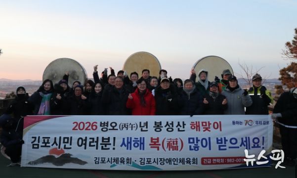 (뉴스핏 = 김호 기자) 김포시와 김포시체육회·김포시장애인체육회가 지난 1일 하성면 봉성산에서 ‘2026 봉성산 해맞이 행사’를 개최하고, 시민들과 함께 병오년 붉은 말의 해의 시작을 알렸다. 이번 행사는 새해 첫 일출을 맞이하며 시민 화합과 지역 공동체의 안녕을 기원하기 위해 마련됐다.