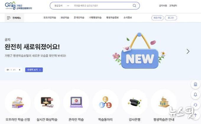 (뉴스핏 = 김호 기자) 가평군이 올해부터 군민 모두가 함께 배우고 성장하는 평생학습도시 조성을 목표로 평생학습 홈페이지를 전면 개편해 새롭게 운영한다고 2일 밝혔다. 온라인 기반 학습 환경을 강화하고 교육 참여 기회를 확대하기 위한 조치다.