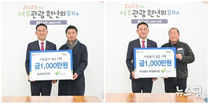 (뉴스핏 = 김호 기자) 동보전기 및 주식회사 부광에너지는 지난 30일 여주시를 방문해 관내 저소득층을 위한 이웃돕기 성금으로 각 1000만원을 기탁했다