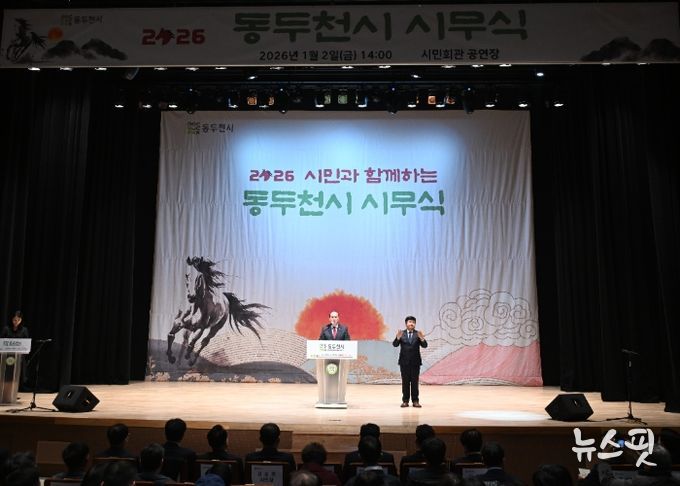 (뉴스핏 = 김호 기자) 동두천시는 2026년 병오년(丙午年) 새해를 맞아 2일 오후 2시 시민회관 공연장에서 시민과 함께하는 ‘2026년 시무식’을 개최했다.