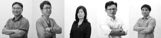 김창주 기획조정팀장, 최중빈 재무회계팀장, 이영아 콘텐츠산업팀장, 김산 서부권역센터장, 노석현 북부권역센터장.(경콘진 제공)