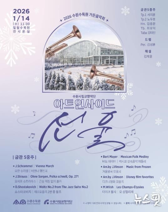 (뉴스핏 = 김수진 기자) 수원특례시는 오는 14일 일월수목원 전시온실에서 수원시립교향악단 아트인사이드 ‘선율’을 개최한다고 9일 밝혔다.