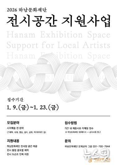 (뉴스핏 = 김수진 기자) (재)하남문화재단이 하남시를 기반으로 시각예술 분야에서 활동하는 지역 예술가를 지원하기 위해 '전시공간 지원사업' 참여 작가를 오는 23일까지 모집한다고 9일 밝혔다.