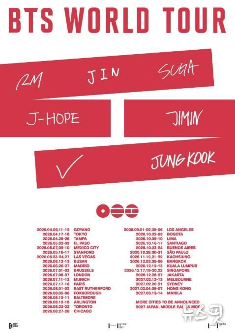 고양특례시는 방탄소년단 일곱 멤버가 다시 하나로 무대에 오르는 월드투어의 첫 공연지로 고양종합운동장이 확정됐다고 15일 밝혔다.