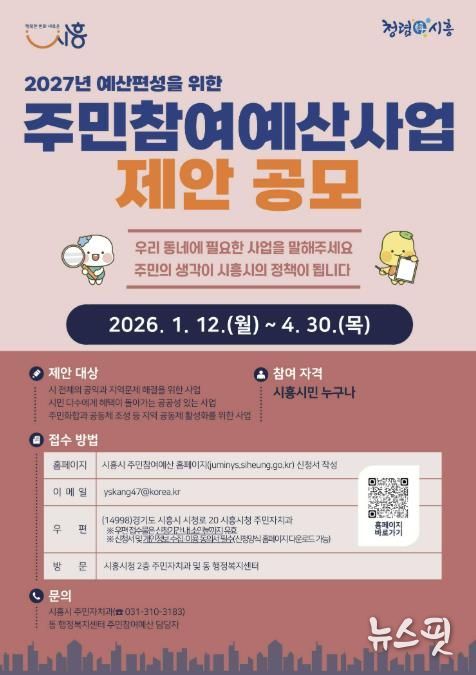 (뉴스핏 = 김수진 기자) 시흥시는 오는 4월 30일까지 주민들이 직접 사업을 제안하는 ‘시흥시 주민참여예산 제안’을 신청받는다.