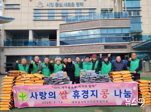 (뉴스핏 = 김수진 기자) 평택시 새마을지도자 진위면협의회는 지난 14일 진위면 행정복지센터에서 ‘사랑의 쌀·콩 나눔행사’를 가졌다.