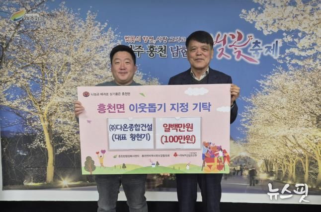 (뉴스핏 = 김호 기자) (주)다온종합건설은 2026년 1월 14일, 지역사회 나눔 실천의 일환으로 이웃돕기 성금을 흥천면행정복지센터에 기탁했다.
