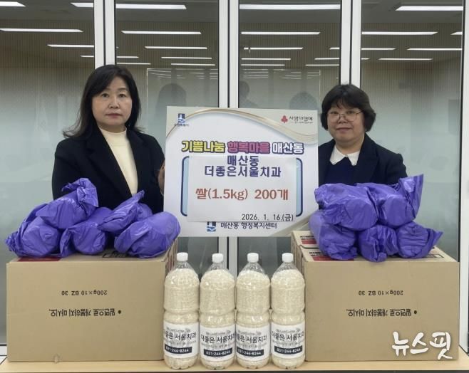 (뉴스핏 = 김호 기자) 수원시 팔달구 매산동은 지난 16일, 매산동 관내에 소재한 더좋은서울치과에서 지역 내 어려운 이웃을 돕기 위해 페트병 쌀 200개를 매산동 지역사회보장협의체에 후원했다고 밝혔다.
