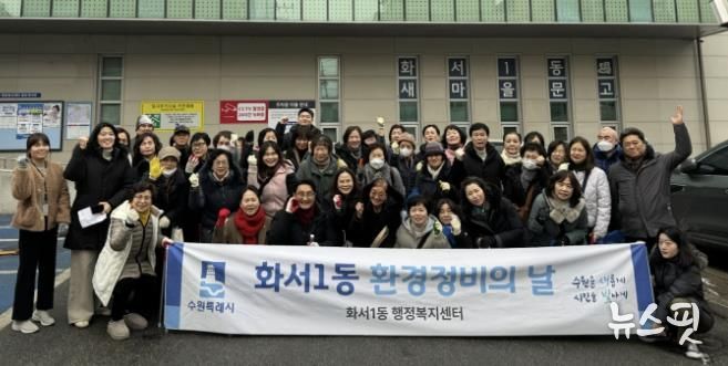 (뉴스핏 = 김호 기자) 수원시 팔달구 화서1동은 지난 15일, 통장협의회 등 단체원 및 주민들과 함께 2026년 설맞이 관내 환경정비를 실시했다고 밝혔다.
