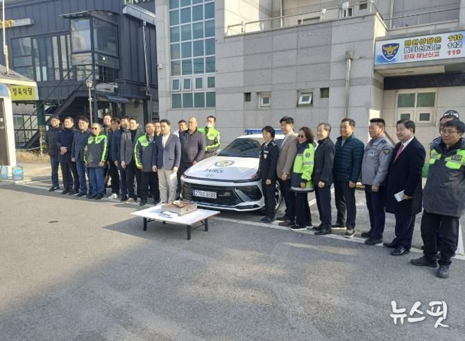 (뉴스핏 = 김호 기자) 포천동 자율방범대는 지난 17일 포천파출소 앞에서 순찰차량의 무사고 운행과 대원들의 안전한 활동을 기원하는 ‘순찰차량 안전기원제’를 개최했다.