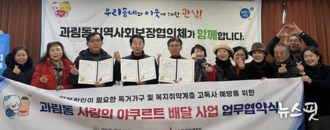 (뉴스핏 = 김수진 기자) 시흥시 과림동 지역사회보장협의체는 지난 1월 19일 ㈜한국야쿠르트 역곡점과 복지 취약계층 안부 확인을 위한 ‘사랑의 요구르트 배달’ 사업 추진 업무협약을 체결했다.