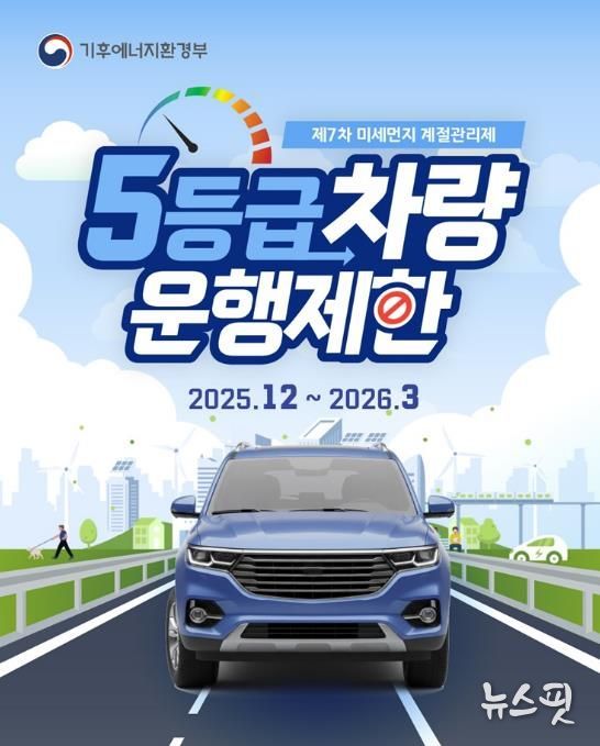 (뉴스핏 = 김호 기자) 파주시는 제7차 계절관리제 기간인 2025년 12월부터 2026년 3월까지 배출가스 5등급 차량에 대한 단속을 실시하고 있다.