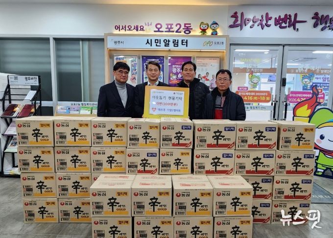 (뉴스핏 = 김호 기자) 광주시 매산1통 기업인협의회는 20일 오포2동 행정복지센터를 방문해 100만 원 상당의 라면을 기탁하며 지역사회 나눔을 실천했다.