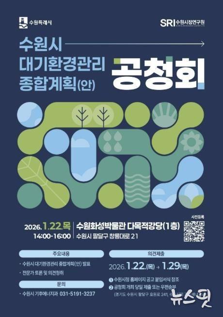 공청회는 수원시 대기환경관리 종합계획(안) 발표로 시작해 전문가 토론, 질의·의견 청취 순으로 진행된다.
