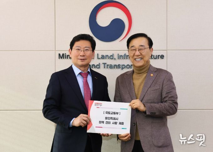 (뉴스핏 = 김수진 기자) 이상일 용인특례시장은 26일 정부세종청사에서 김윤덕 국토교통부 장관에게 ‘용인 첨단시스템반도체 클러스터 국가산업단지’ 정상 추진과 경기남부광역철도 ‘제5차 국가철도망 구축계획’ 반영 등 시의 주요 현안을 설명하는 자료를 건네고 국토교통부 지원과 협조를 요청했다.