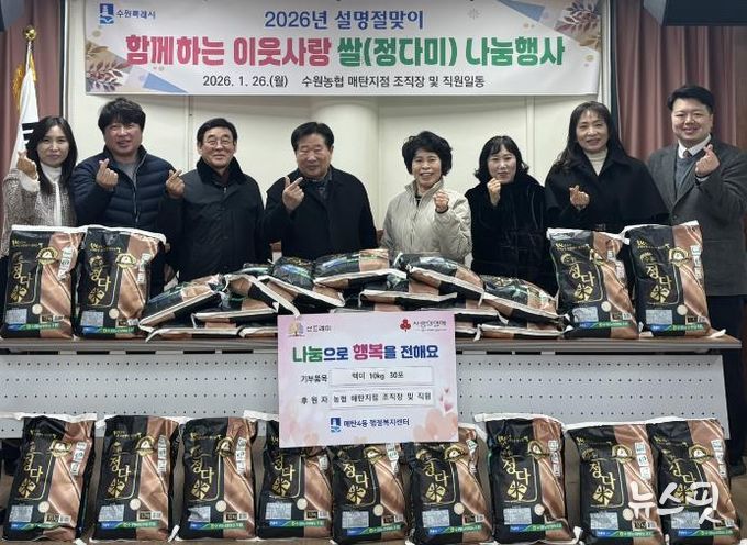 최종천 수원농협 매탄지점 관내이사는 “민족 대명절인 설을 앞두고 임직원들의 정성을 담아 준비했다”며 “농협 쌀로 마련한 이번 나눔이 어려운 이웃들에게 실질적인 위로와 희망이 되기를 바란다”고 전했다.