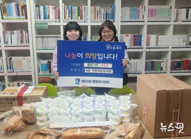 (뉴스핏 = 김호 기자) 수원시 영통구 매탄3동은 지난 29일 매탄동 소재 SQ푸른작은도서관에서 지역 아동들의 건강한 성장을 응원하기 위해 콩요거트 144개를 기부했다고 밝혔다.