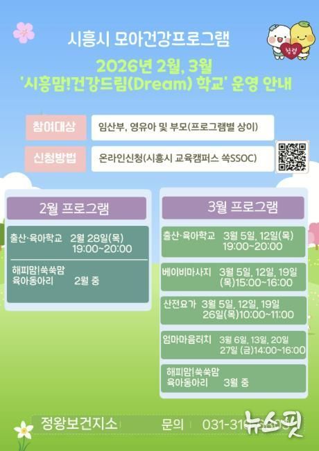 이번 프로그램은 2월부터 5월까지 정왕보건지소에서 운영되며, 4개 분야ㆍ12종 강좌를 총 89회 운영할 계획이다. 분야별 주요 강좌는 ▲(임신ㆍ출산ㆍ육아 분야) 출산ㆍ육아학교, 오감태교, 모유수유클리닉, 베이비 마사지, 오감놀이 ▲(운동 분야) 산전요가, 산후필라테스 ▲(심리 분야) 산전ㆍ산후 우울 예방 미술치료와 심리 테라피 프로그램이 있다.