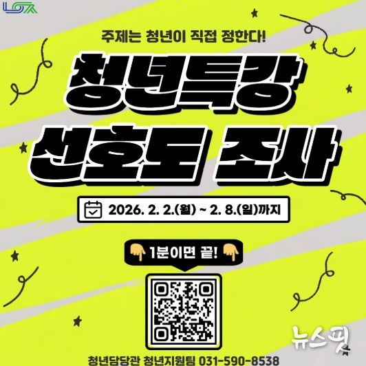 (뉴스핏 = 김호 기자) 남양주시는 2일부터 8일까지 ‘2026년 청년특강’ 운영을 위한 사전 선호도 조사를 실시한다고 밝혔다.