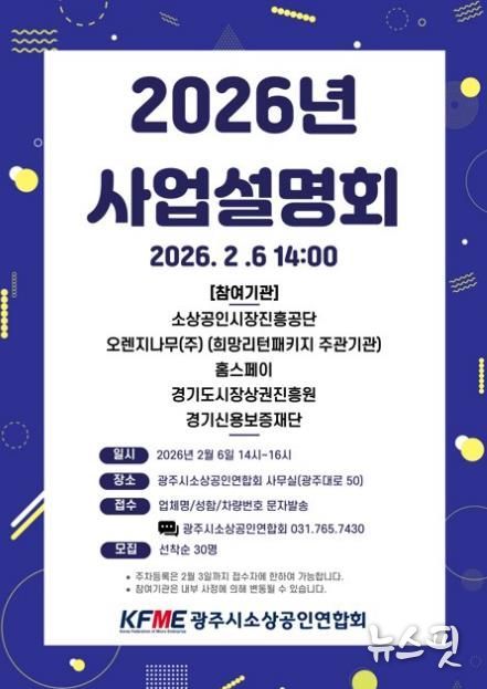 (뉴스핏 = 김호 기자) 광주시소상공인연합회는 지역 소상공인을 대상으로 2026년도 주요 정책과 지원사업을 안내하는 사업설명회를 개최한다고 3일 밝혔다.