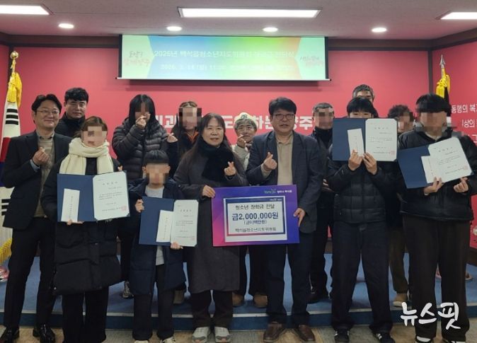 (뉴스핏 = 김호 기자) 백석읍 청소년지도위원회가 4일 지역 내 학생 4명에게 총 200만 원의 장학금을 전달했다.