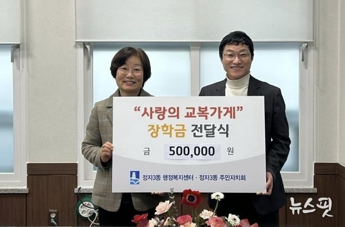 이번 성금은 2025년 한 해 동안 주민자치회가 운영한 ‘사랑의 교복가게’ 운영 수익금으로 조성됐으며, 관내 저소득 가정 학생 1명에게 장학금으로 전달될 예정이다.