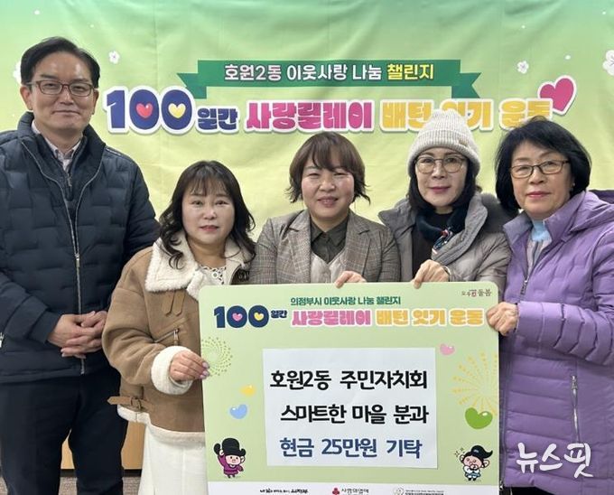 (뉴스핏 = 김호 기자) 의정부시 호원2동주민센터는 지난해 12월부터 올해 2월까지 호원2동 주민자치회 회장 김규오, 부회장 이영배를 비롯한 아름다운 마을·스마트한 마을·살기 좋은 마을 분과가 지역 내 어려운 이웃을 돕기 위해 성금 50만 원, 쌀 50kg, 컵라면 10상자, 쌀국수 200인분, 사과즙 30박스를 기탁했다고 밝혔다.