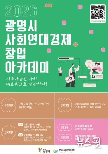 (뉴스핏 = 김수진 기자) 광명시가 ‘2026년 광명시 사회연대경제 창업 아카데미’ 수강생을 오는 25일까지 모집한다.