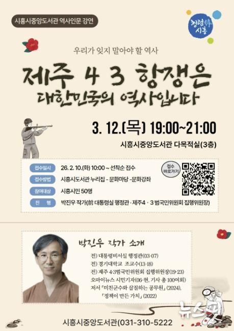 (뉴스핏 = 김수진 기자) 시흥시중앙도서관은 오는 3월 12일 오후 7시, 시민을 대상으로 역사 인문 강연 ‘제주 4ㆍ3항쟁은 대한민국의 역사입니다’를 운영한다고 6일 밝혔다.